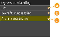 Tryk på <Begræns afsendefunktion>