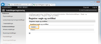 Nøgleparret eller CA-certifikatet er installeret på maskinen.