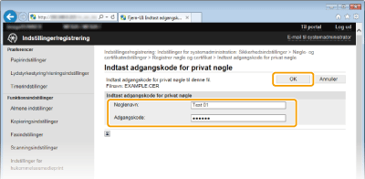 Angiv navnet på nøgleparret og adgangskoden, og klik derefter på [OK].