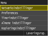 Alle indstillinger om netværket vises med korte beskrivelser. Standardindstillingerne er angivet med en daggert (