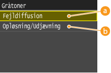 Når <Fejldiffusion> er aktiveret for <Gråtoner> (Gråtoner), anvender <Tilstand 1>, <Tilstand 2>, <Tilstand 3> og <Tilstand 4> samme effekt på udskrifter, som <Tilstand 6> gør.