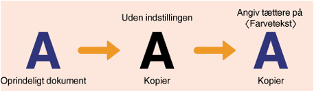 Indstillingerne gælder for farvekopier, når <Oprindelig type> er indstillet til <Tekst/foto/kort> eller <Tekst> ( Valg af dokumenttype).
