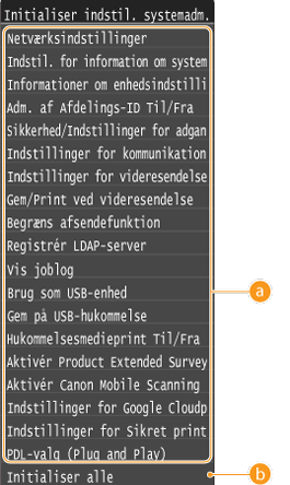 Hvis du vil initialisere indstillingerne i <Netværksindstillinger>, kan du også trykke på <Menu>
