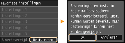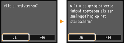 <Ja>.Als u bij stap 2 instellingen hebt geselecteerd die al geregistreerd waren, ziet u een bevestigingsscherm voor het overschrijven van de oude instellingen.