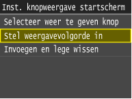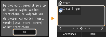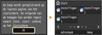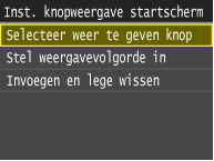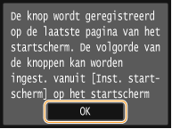 Als het scherm Start vol is en er geen instellingen meer kunnen worden geregistreerd, wist u lege ruimten met <Instell. startscherm> op het scherm Start of verwijdert u geregistreerde knoppen. Knoppen verwijderen