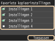 Schakel de selectievakjes in voor alle instellingen die op het scherm Start moeten worden weergegeven, en tik op <Toepassen>.