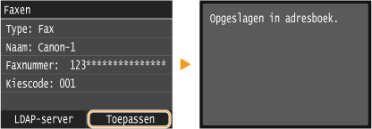Afhankelijk van de inhoud die is opgeslagen op de LDAP-server, worden automatisch de gebruikersnaam en het faxnummer/e-mailadres van de bestemming op de LDAP-server ingevoerd.