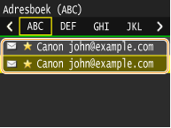 Het is niet verplicht een waarde op te geven voor <Naam>. Als u een waarde opgeeft voor <Naam>, kunt u de bestemming alfabetisch zoeken.