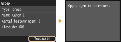 Als u wordt gevraagd een pincode in te voeren, gebruikt u de numerieke toetsen om de juiste pincode in te voeren en tikt u op <Toepassen>. Een pincode instellen voor het adresboek
