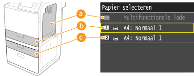Hiermee selecteert u het papier dat in de papierlade is geplaatst.