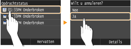 De documenten zijn gescand en wachten om te worden afgedrukt. Tik op het document waarvoor u het kopiëren wilt annuleren.
