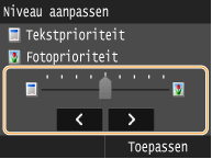 Kies deze instelling als de beeldkwaliteit belangrijker is dan de afdruksnelheid. U kunt zelfs het niveau instellen waarop prioriteit wordt gegeven aan de kwaliteit van de tekst of foto's. Tik op