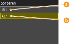 Als u meerdere kopieën wilt gaan maken van documenten met meerdere pagina's, kunt u <Sorteren> op <Aan> zetten om de kopieën op volgorde te sorteren. Deze functie is handig bij het voorbereiden van hand-outs voor vergaderingen of presentaties.