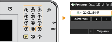 Als <Beperk nieuwe bestemmingen> is ingesteld op <Aan>, kunt u geen bestemmingen invoeren met de numerieke toetsen.