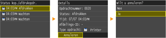 Annuleren vanuit de UI op afstandU kunt het afdrukken annuleren vanuit de pagina [Opdrachtstatus] van de UI op afstand: De huidige status van afdruktaken controleren