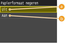 Kies deze optie als u niet automatisch wilt afdrukken op een ander papierformaat. Als het opgegeven papier op is, stopt de machine dan met afdrukken en ziet u een foutmelding.