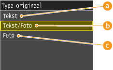 U kunt de beeldkwaliteit voor de scan selecteren op basis van het documenttype, zoals documenten met alleen tekst, documenten met grafieken en tabellen of documenten met tijdschriftfoto's.