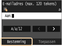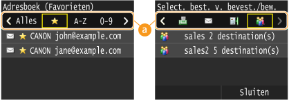 U kunt een bestemming opgeven via het adresboek door een keuze te maken in de lijst met opgeslagen bestemmingen of door op naam van ontvanger te zoeken naar bestemmingen. U kunt ook rechtstreeks een bestemming opgeven door een code van drie cijfers (code voor verkort kiezen) in te voeren die is toegewezen aan een bestemming.