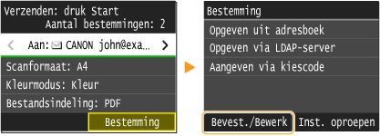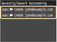 Als u bestemmingen snel en eenvoudig wilt verwijderen zonder de lijst met bestemmingen weer te gevenVoordat u bij stap 1 op <Bevest./Bewerk> tikt, kunt u op