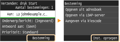 U kunt een bestemming selecteren uit de drie laatst gebruikte bestemmingen. Als u een eerder gebruikte bestemming opgeeft, worden ook de laatst gebruikte scaninstellingen, zoals de dichtheid, voor die bestemming geselecteerd.