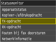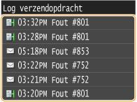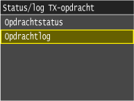 Als <Weergave opdrachtlog> is ingesteld op <Uit>, kunt u de logboeken voor verzonden documenten niet raadplegen.