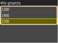 In de meeste Ethernet-netwerken is 1500 bytes de maximale grootte van een gegevenspakket dat kan worden verzonden. Een pakket is het blok met gegevens waarin de oorspronkelijke gegevens worden opgedeeld voordat ze worden verzonden. De maximale verzendeenheid (MTU) kan per netwerk verschillen. Wijzig de instellingen van het apparaat indien nodig. Neem voor meer informatie contact op met de netwerkbeheerder.