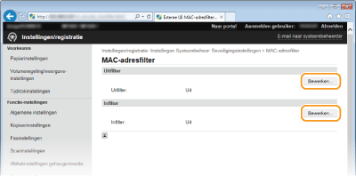 U kunt de instellingen voor IP-adresfilters in- of uitschakelen vanaf <Menu>. MAC-adresfilter