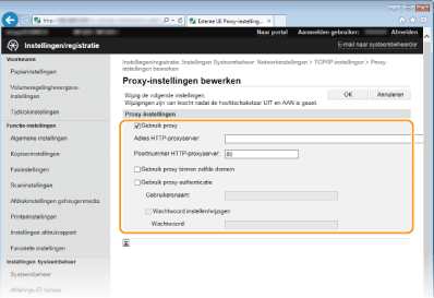 Schakel het selectievakje [Gebruik proxy] in en geef de benodigde instellingen op.
