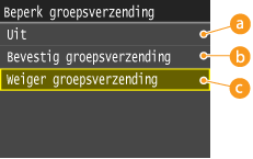 Selecteer deze optie om het bevestigingsscherm weer te geven als u een fax verstuurt met groepsverzending.