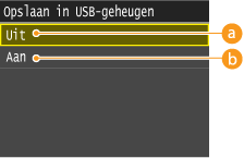 Selecteer deze optie om te voorkomen dat gegevens worden opgeslagen op een USB-geheugenapparaat. Gescande gegevens kunnen niet worden opgeslagen op het USB-geheugenapparaat.