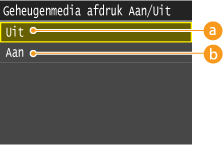 Tik op <Geheugenmedia afdruk Aan/Uit>.