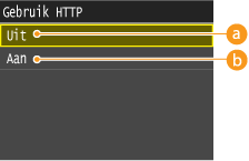 HTTP wordt gebruikt voor communicatie via het netwerk, bijvoorbeeld wanneer u het apparaat bedient via de UI op afstand. Als u een USB-verbinding gebruikt of HTTP om een andere reden niet nodig hebt, kunt u het protocol uitschakelen om aanvallen van kwaadwillende gebruikers via de ongebruikte HTTP-poort te voorkomen.
