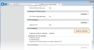 U kunt met behulp van Transport Layer Security (TLS) de communicatie coderen die plaatsvindt tussen het apparaat en een webbrowser op de computer. TLS is een mechanisme voor het coderen van gegevens die via het netwerk worden verzonden of ontvangen. TLS moet zijn ingeschakeld wanneer u de UI op afstand gebruikt voor het opgeven van instellingen voor IPSec (Methode gedeelde sleutel), verificatie met IEEE 802.1X (TTLS/PEAP) of SNMPv3. Als u TLS wilt gebruiken voor de UI op afstand, moet u een sleutelpaar instellen en de functie TLS inschakelen. Genereer of installeer het sleutelpaar voor TLS voordat u TLS inschakelt (