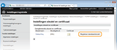 Klik op [Registreer standaardsleutel] naast het sleutelpaar dat u wilt gebruiken.