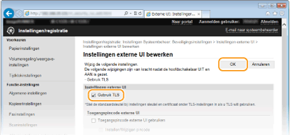 Klik op [Beveiligingsinstellingen]  [Instellingen externe UI].