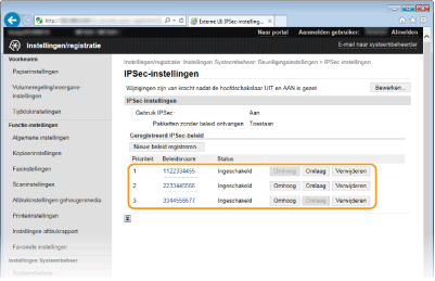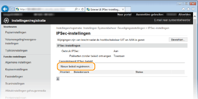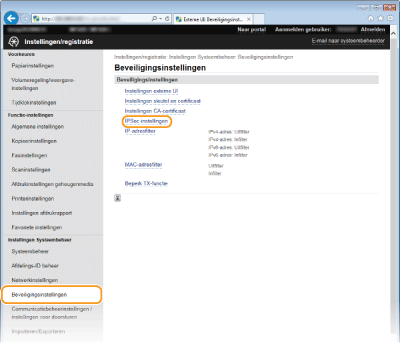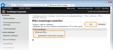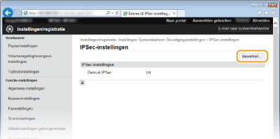 U kunt de IPSec-communicatie in- of uitschakelen vanaf <Menu>. Gebruik IPSec