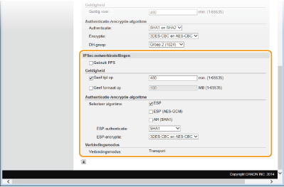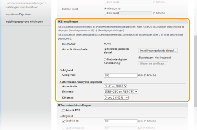 Geef instellingen op voor [Geldig voor] en [Authenticatie]/[Encryptie]/[DH-groep].
