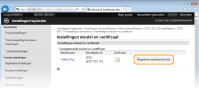 Klik op [Registreer standaardsleutel] naast het sleutelpaar dat u wilt gebruiken voor de clientverificatie.