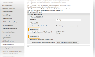 Schakel het selectievakje [Gebruik TTLS] of [Gebruik PEAP] in.