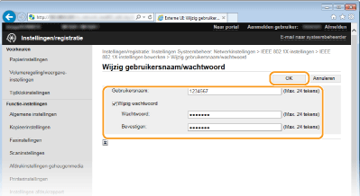 Klik op [Wijzig gebruikersnaam/wachtwoord].