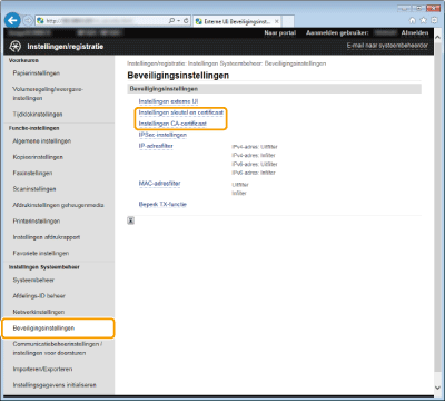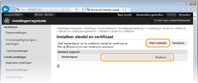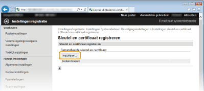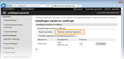 [Instellingen sleutel en certificaat] (voor sleutelparen) of [Instellingen CA-certificaat] (voor CA-certificaten).