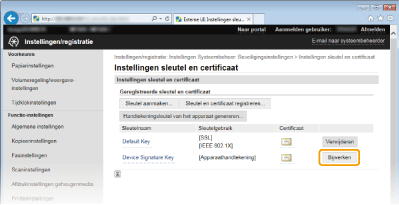 Het certificaat en de handtekeningsleutel voor het apparaat zijn vijf jaar geldig. Daarna dient u ze te verlengen.