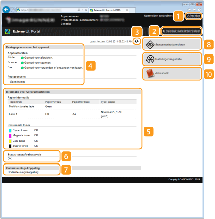 Hier ziet u de koppeling voor ondersteuning die is opgegeven bij [Apparaatinformatie] onder [Systeembeheer].