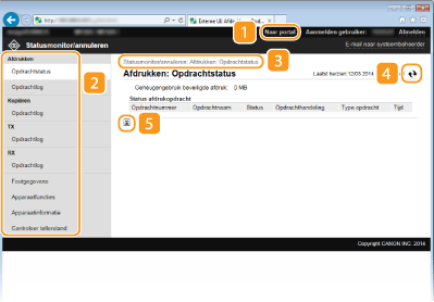 Hiermee geeft u de status weer van de huidige afdruktaken en de geschiedenis van afdruktaken en kopieertaken, en van verzonden en ontvangen documenten. U kunt ook de status van de machine controleren.