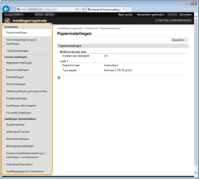 U kunt de instellingen onder de [Instellingen Systeembeheer] alleen wijzigen als u zich aanmeldt in de systeembeheerdersmodus.