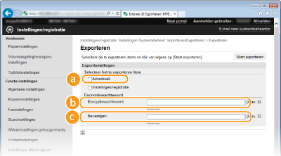 Als <Beperk nieuwe bestemmingen> <Aan> is, kunt u het adresboek niet importeren.