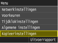 Alle instellingen voor het kopiëren worden kort toegelicht. Standaardinstellingen worden aangegeven met een dolksymbool (