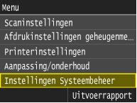 Kies deze optie om in te stellen of u Afdelings-ID beheer wilt gebruiken, een functie waarmee u id's kunt gebruiken als gebruikersaccounts om toegangsbevoegdheden op te geven en informatie te registreren over het gebruik van de machine.