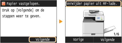 Trek het vastgelopen document of papier niet hardhandig uit het apparaatHierdoor kunnen inwendige onderdelen beschadigd raken. Als u het papier niet kunt verwijderen, neem dan contact op met uw Canon-dealer.