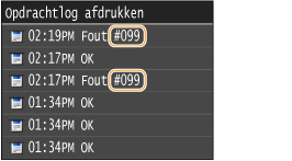 Als het afdrukken mislukt, u een fax of gescand document niet kunt verzenden of ontvangen of als er een andere fout optreedt, wordt die fout als een foutcode van drie cijfers weergegeven in een rapport of een bericht op het scherm <Statusmonitor>. Raadpleeg de volgende informatie om voor een foutcode mogelijke oorzaken en oplossingen weer te geven. Als u een foutrapport wilt afdrukken, leest u